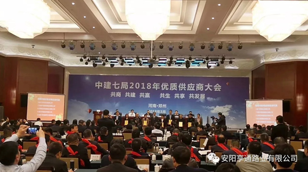 在2018年3月8日中建七局交通公司“2018年度生產(chǎn)推進(jìn)會(huì)暨2017年度供應(yīng)商大會(huì)”上,安陽亨通路業(yè)有限公司又獲得了中建七局交通公司頒發(fā)的“優(yōu) 秀合作企業(yè)”的榮譽(yù)稱號(hào)。